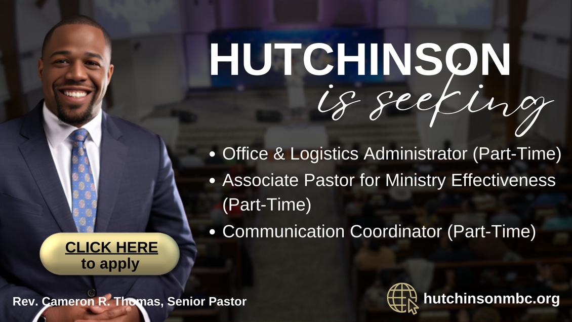 Hutchinson Missionary Baptist Church will make reasonable accommodations for qualified individuals with disabilities, in accordance with applicable laws. The church reserves the right to modify or withdraw any job or ministry opportunity announcement at any time prior to a final hiring decision.